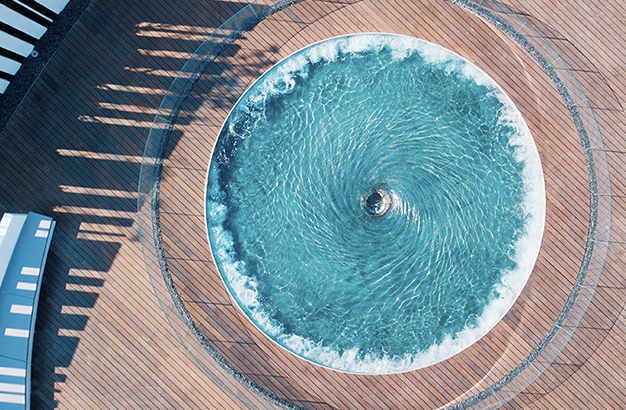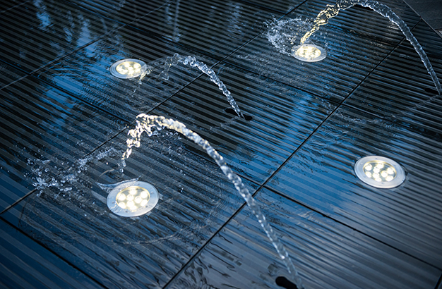 水本無形,它的物理特性讓它能輕易地跟隨容器而呈現(xiàn)不同的面貌。獨(dú)特的延展性使得水能呈現(xiàn)無以計(jì)數(shù)的不同效果。燈光的布置,介質(zhì)的紋理,顏色和動(dòng)態(tài)都能給水帶來無窮的變化